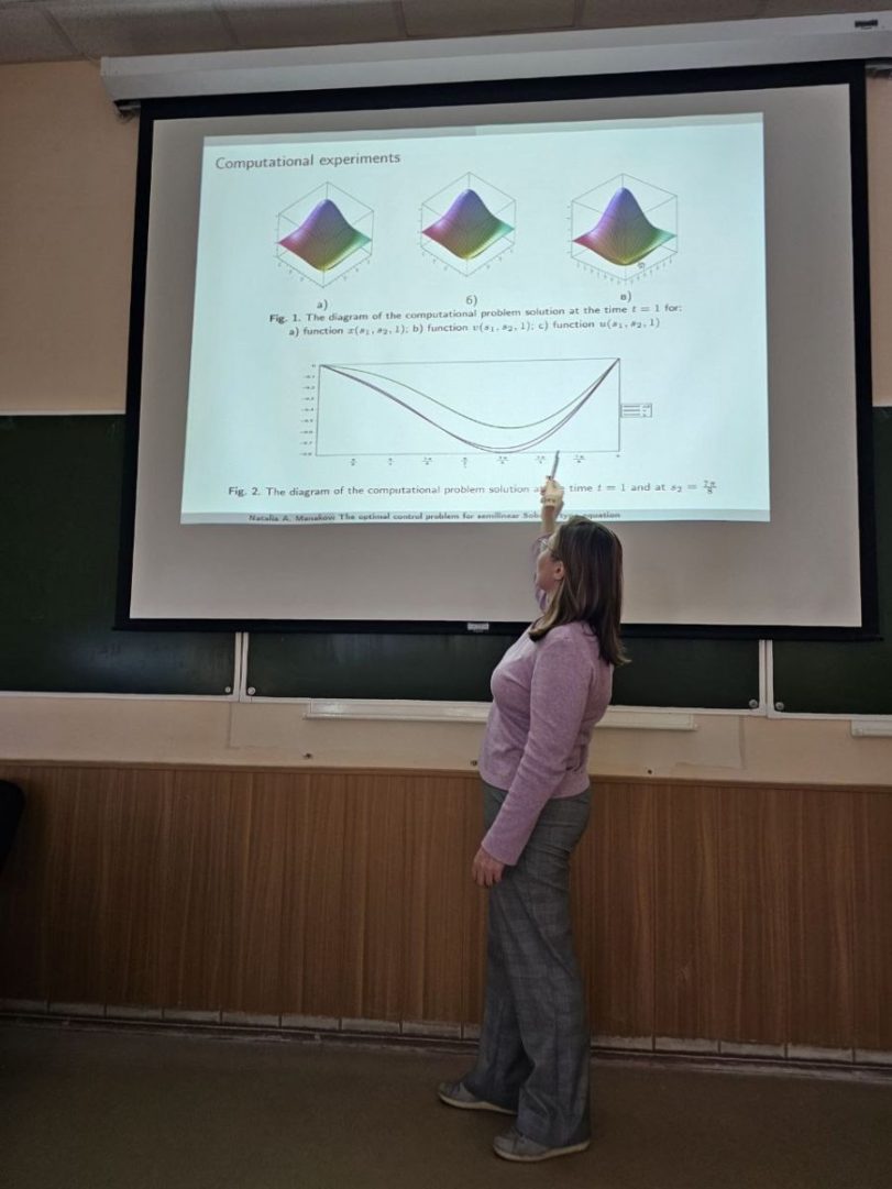 На семинаре представили свои результаты профессор Наталья Манакова с ученицей Надеждой Николаевой. Абстрактные результаты и разработанные алгоритмы апробированы на математических моделях нелинейной диффузии, движения подземных вод со свободной поверхностью, фильтрации жидкости в трещиновато-пористой среде, движения волн на мелкой воде, в основе которых лежат неклассические уравнениям математической физики.